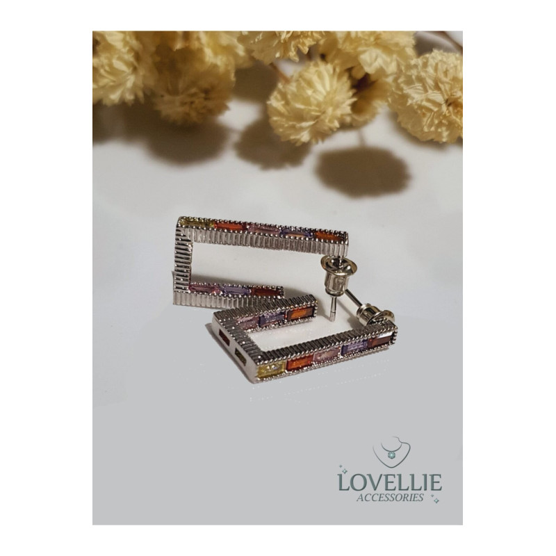 Renkli Taşlı Silver Küpe