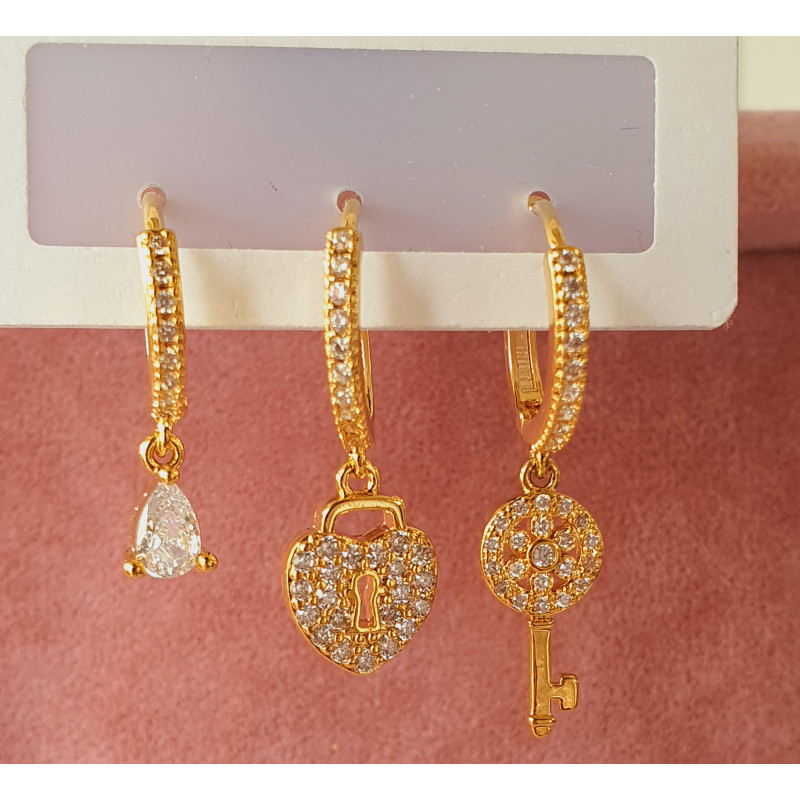 Set Kilit & Taşlı Gold Küpe