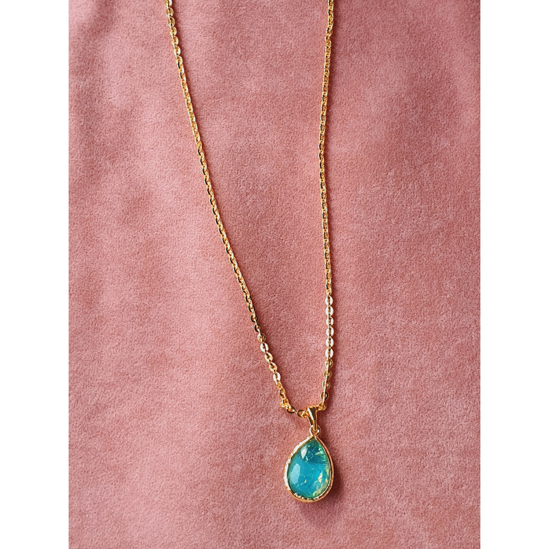 Mavi Sedefli Damla Gold Kolye