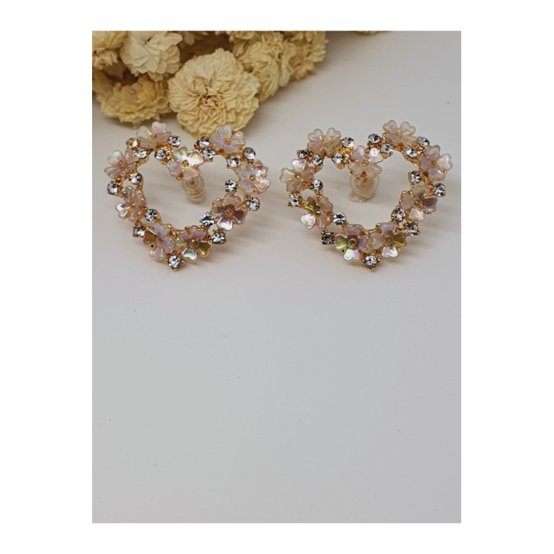 Taşlı Kalp Papatya Küpe